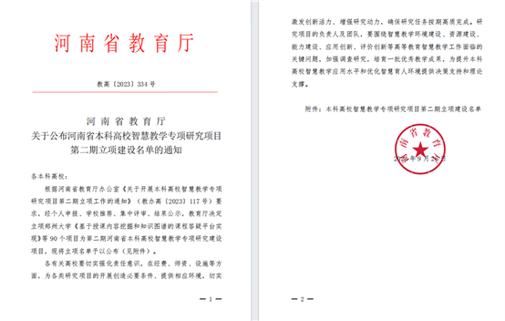 近日,河南省教育厅发布了《关于公布河南省本科高校智慧教学专项研究项目第二期立项建设名单的通知》(教高〔2023〕334号),我校邢丹丹副教授主持的《民办高校优质在线课程资源共建与共享机智研究》成功获批立项,这是我校第二次获批该类研究课题,也是我校一直以来重视开展智慧化教学所取得的标志成果。