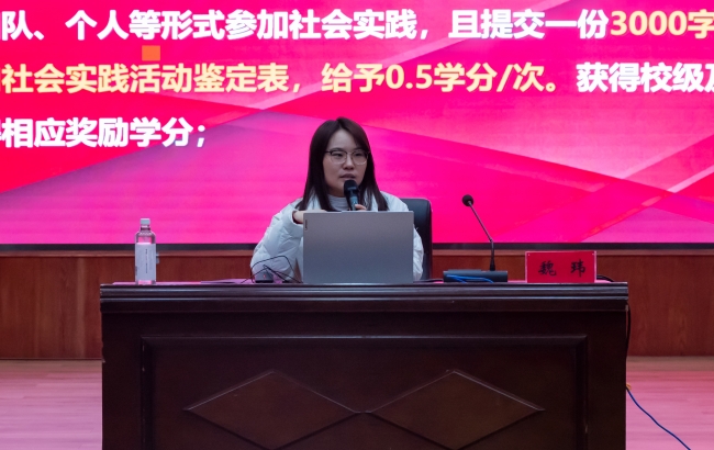 魏玮老师以《丰富多彩的第二课堂活动》为主题,重点围绕“第二课堂的内容、制度简介、组织结构及制度、平台活动管理方案疑点诠释”四个板块进行深入解析,加深了团干部对第二课堂的整体认识,为下一步各团支部开展多样化、实用化、趣味化的精品团日活动起到重要作用,最后,她鼓励在座学生积极参与丰富多彩的校园活动,努力成为更具有活力与担当的时代青年。